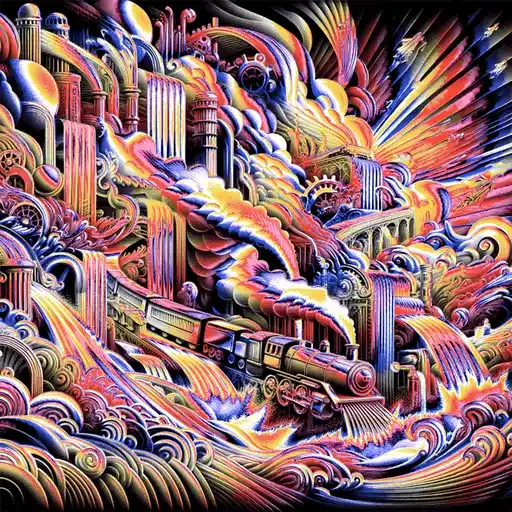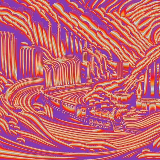 With the idea of a densly packed scene filled with trains, smoke, and environmental effects, I prompted DALL-E 3 to generate my scenes. Hundreds of iterations later, I have a collection of choice, black and white base images suitable for color cycling.